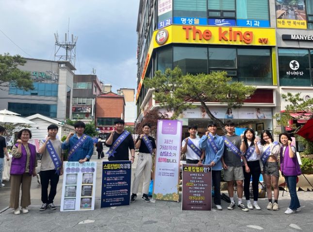 [제주교통복지신문 김강석 기자] 제천가정폭력상담소는 최근 차없는 거리에서 세명대학교 법학과 학생들과 함께 “행복의 시작은 폭력없는 가정”을 주제로 폭력예방 캠페인을 진행했다고 15일 밝혔다.