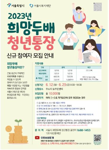 유성훈 금천구청장은 “희망두배 청년통장을 통해 금천구의 청년들이 주거·결혼·창업 등 미래를 위한 자금 마련과 자립 준비에 도움이 되기를 바란다”라고 전했다.