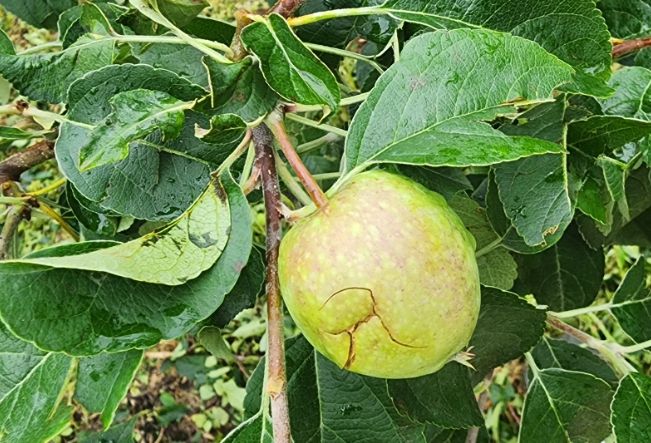 우박 피해를 받은 사과는 피해 과실을 제거하되 수세 안정을 고려하여 일정한 과실을 남겨두도록 하고, 살균제를 5~7일 간격으로 1~2회 충분히 살포하여 상처부위에 2차 감염이 일어나지 않도록 한다.