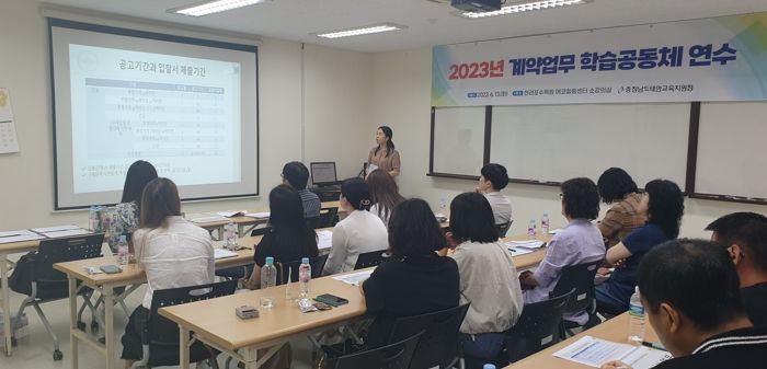 [제주교통복지신문 김강석 기자] 충청남도 태안교육지원청은 지난 13일 천리포수목원 에코힐링센터에서 관내학교 및 교육지원청 계약업무 학습공동체 회원 22명을 대상으로 계약업무 학습공동체 연수를 실시했다.