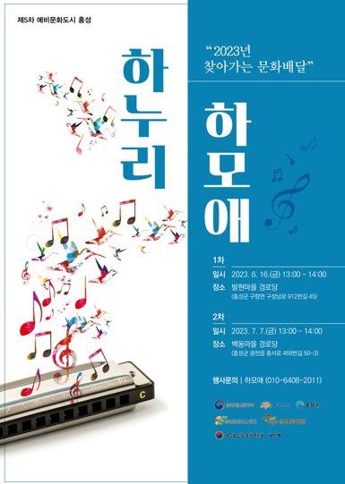 [제주교통복지신문 김강석 기자] 홍성문화도시센터의 '2023년 찾아가는 문화배달'지원사업에 선정된 하모애의 ‘하누리 하모애’ 공연이 오는 6월 16일(금) 오후 1시에 구항면 발현마을 경로당을 찾아간다.