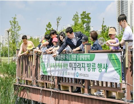 이어, 어린이들과 함께 토종 미꾸라지를 방류하는 뜻깊은 시간을 가졌다.