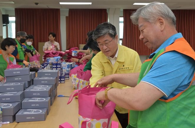 김길성 구청장은“기후 위기로 폭염을 피해갈 수 없게 됐다”며, “주민분들과 직 원들이 정성으로 담은 폭염안심꾸러미로 건강한 여름 보내시기 바란다”고 전했다.