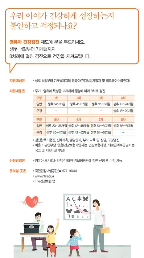 · 검진항목 : 문진, 신체계측, 발달평가, 부모 교육 및 상담, 구강검진