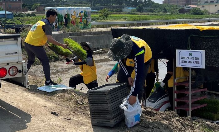 [제주교통복지신문 김강석 기자] 함평군4-H연합회가 영농철을 맞아 지난 13일 공동과제포에서 모내기를 실시했다.