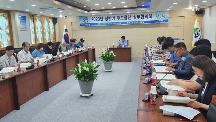 [제주교통복지신문 김강석 기자] 청양군이 지난 13일 군청 상황실에서 이종필 부군수 주재로 상반기 먹거리 종합계획(푸드플랜) 실무협의회를 열고 39개 연관사업에 대한 추진 상황을 점검했다. 이날 회의에는 관련 부서와 지역활성화재단 소속 23개 팀 관계자가 참석했다.