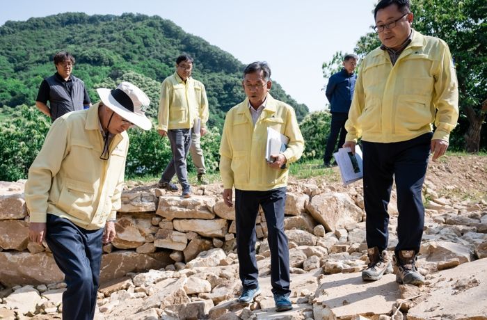 [제주교통복지신문 김강석 기자] 김돈곤 청양군수가 지난 13일 장평면과 청남면 수해복구 현장 3곳을 찾아 공사 진척 상황과 우기 대비책을 점검했다.