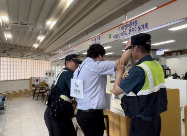 이번 모의훈련에는 민원과 직원, 안전요원, 경찰 등 18여명이 참여하여, 폭언‧폭행 등 위법행위에 신속하게 대처할 수 있도록 실제 상황을 가정하여 모의훈련을 진행했다.