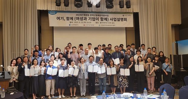 특화형 경력단절예방 사업설명회에는 ㈜화인써키트, ㈜서울화장품, ㈜가나안전자를 비롯한 인천 관내 56개 업체와 새일사업 관계자 등 80여 명이 참석한 가운데 2023년 특화형 경력단절예방지원사업 관련 추진 방향을 설명했고, 경력단절예방 지원사업의 필요성과 그 효과를 공유하기 위해 진행됐다.