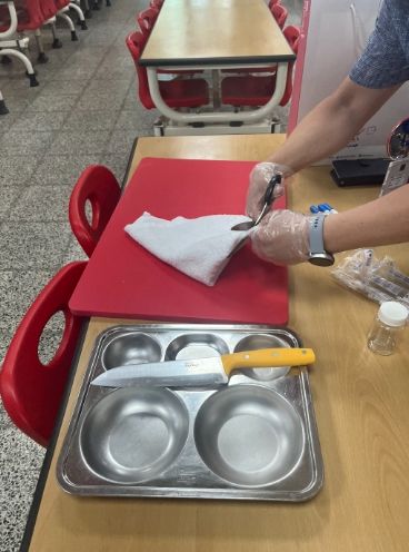 이번 검사는 여름철 식중독 사고 예방을 위한 목적으로 급식소내 소독 및 살균등이 적절하게 이루어지는지를 평가하고, 조리기구(도마,칼,행주,식판)에 대한 시료를 채취하여 살모넬라 및 대장균 검사를 실시한다.