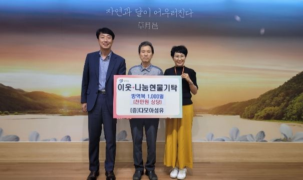 [제주교통복지신문 김강석 기자] 광주시 초월읍 쌍동리에 위치한 지역기업 다모아섬유는 축산농가를 위해 방역복 1,000벌(1000만원상당)을 초월읍행정복지센터에 기탁했다고 14일 밝혔다.