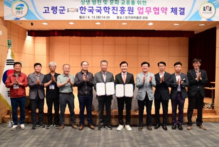 [제주교통복지신문 김강석 기자] 고령군과 한국국학진흥원은 6월 13일 대가야박물관 강당에서 상생 발전 및 문화교류를 위하여 업무협약(MOU)을 체결했다. 이날 협약식에는 정종섭 한국국학진흥원장과 직원 등 80여명이 참석했다.