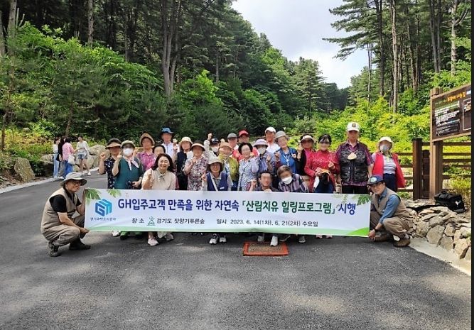 [제주교통복지신문 김강석 기자] 경기주택도시공사(GH)는 14일 경기도 잣향기푸른숲(가평 소재)에서 공공임대주택 독거노인 및 고령자 입주민을 대상으로 산림치유 힐링캠프 체험행사를 시행했다.