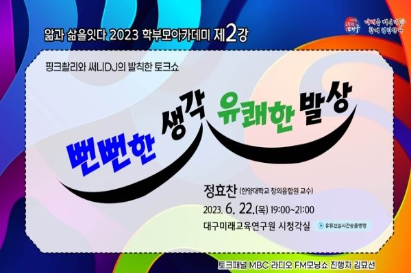 [제주교통복지신문 김강석 기자] 대구시교육청은 오는 6월 22일 19:00, 대구미래교육연구원에서 ‘2023. 학부모 아카데미 제2강’을 운영한다.