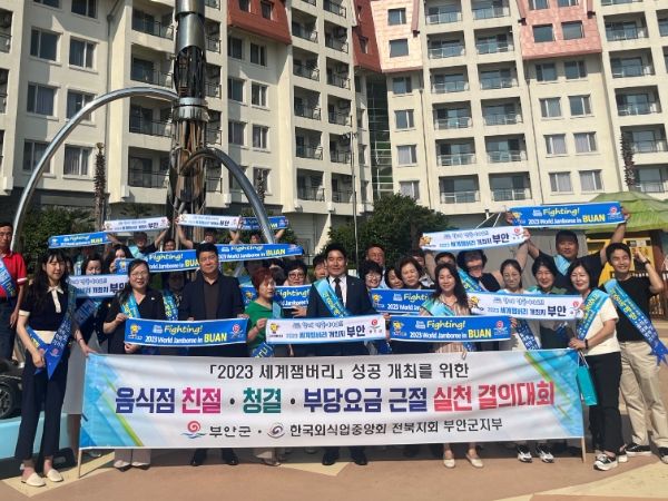 [제주교통복지신문 김강석 기자] 부안군은 12일 한국외식업중앙회 부안군지부와 함께 '2023 세계잼버리' 성공 개최를 위한 결의대회를 가졌다.