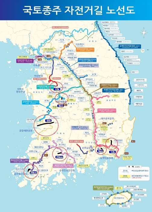 ‘국토종주 자전거길 정비사업’은 자전거 이용자에게 새로운 볼거리와 즐길거리를 제공하고 안전한 자전거 주행환경 조성을 위해 마련됐으며, ‘신규노선 발굴’과 ‘기존노선 개선’을 중점적으로 시행한다.