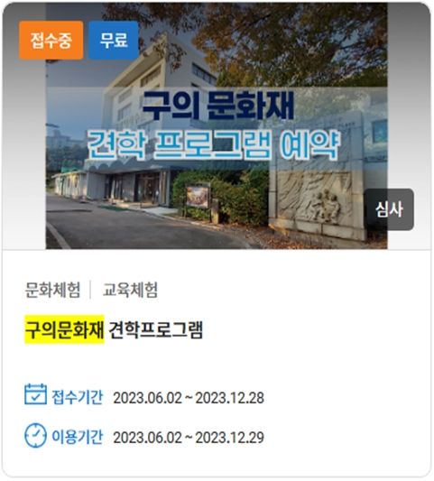 구의아리수정수센터 내 ‘구의문화재’와 뚝도아리수정수센터 인근 ‘수도박물관’ 견학을 희망하는 시민들은 공공예약시스템과 유선 전화를 통해 신청할 수 있다. 뚝도아리수정수센터 견학을 희망하는 전문가, 유관기관은 행정관리과로 문의하면 된다.