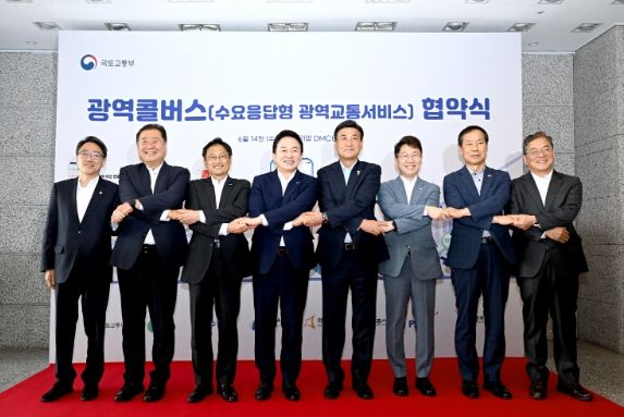 본격적인 사업 추진을 앞두고 ‘광역콜버스 협약식’이 14일 상암DMC에서 개최됐다. 협약식에는 원희룡 국토교통부 장관, 오후석 경기도제2부지사, 이소춘 시흥시 부시장 등 시범사업 자치단체장이 참석했다.