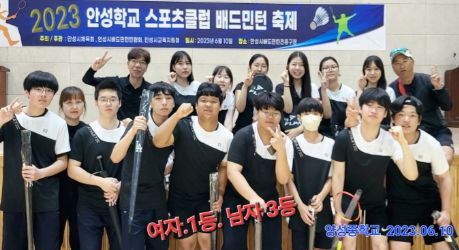 [제주교통복지신문 김강석 기자] 안성 양성중학교는 2023 안성 학교스포츠클럽 축제의 배드민턴 종목에 참가하여, 단체전에서 여학생 1위, 남학생 3위를 차지했다. 이번 대회 선수로 참가한 3학년 지현서 학생은 “우리 3학년 20명의 학생이 선수로 그리고 응원하기 위해 모두 참가해서 중학교 마지막 대회 참가에 더 기억에 남는다”라고 소감을 남겼다.