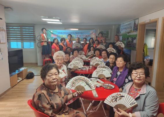 양주2동 지역사회보장협의체 양재영 위원이 직접 강의를 진행하고 위원들이 수업 보조로 참여하여 어르신들이 직접 부채에 그림을 그리면서 여가생활을 즐기도록 도왔다.