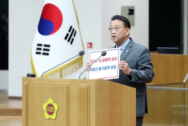 [제주교통복지신문 김강석 기자] 경기도의회 백현종 도의원(국민의힘, 구리1)은 14일 본회의장에서 진행된 제369회 정례회 발언을 통해 구리시의 교통문제 해소를 위한 GTX-B노선의 갈매역 정차와 지하철 6호선의 구리(동구릉역)연장을 강력하게 촉구했다.