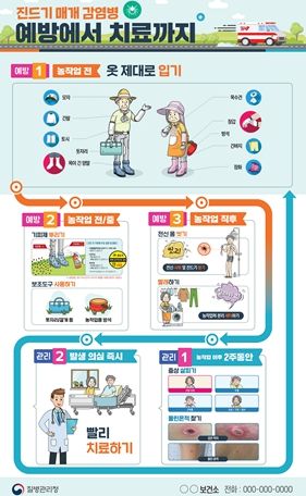 예방 백신과 치료제가 없어 주의해야 하는 감염병인 만큼 야외활동 후 2주 이내에 고열(38~40℃), 소화기증상(오심, 구토, 설사 등)이 나타나면 즉시 의료기관을 방문해 의료진에게 야외활동력을 알리고 진료받아야 한다.