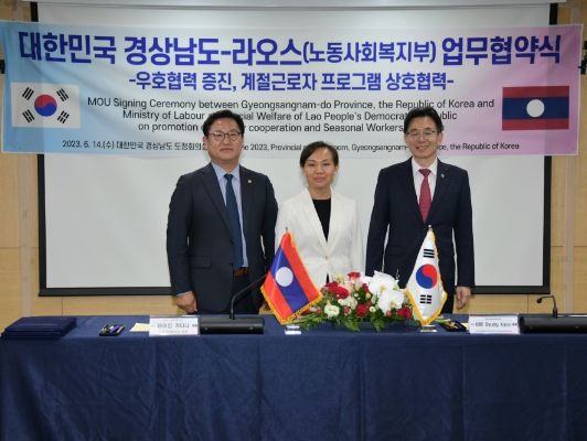 이번 협약식은 도내 인력필요 농가에 우수한 외국인 계절근로자를 유치하기 위해 바이캄 카타냐 라오스 노동사회복지부 장관 일행의 방한 일정에 맞추어 경상남도 주관으로 이루어졌다.