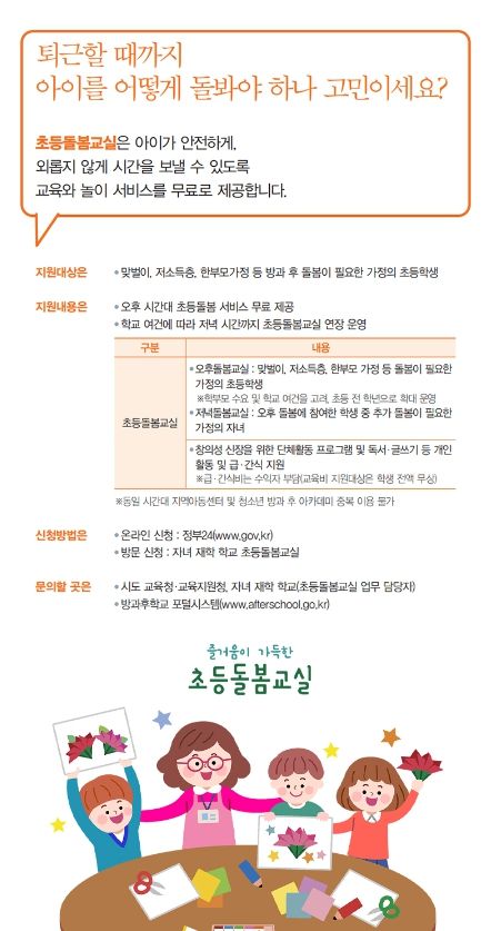 · 오후 시간대 초등돌봄 서비스 무료 제공