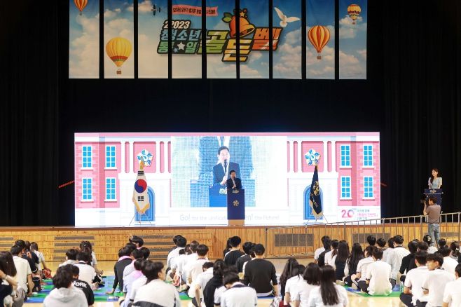 퀴즈 문제에 도전하는 ‘도전 골든벨’ 프로그램 방식으로 진행한 이번 대회에는 시·군 예선대회를 통과한 도내 고교생 300여 명이 참가했다.