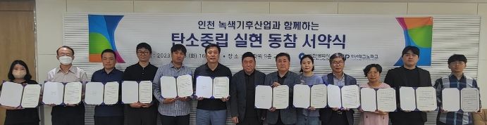 [제주교통복지신문 김강석 기자] 인천테크노파크(인천TP)는 지난 13일 송도국제도시 갯벌타워 9층 교육장에서 녹색기후산업 분야 중소기업과 함께 ‘탄소중립 실현 동참 서약식’을 가졌다고 밝혔다.