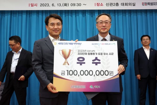 시는 이번 자치단체 합동평가에서 강원도 18개 시·군에서 우수상 수상과 함께 1억 원의 재정 인센티브를 확보하고, 확보된 재정은 지역 내 현안사업에 투입할 계획임을 밝혔다.