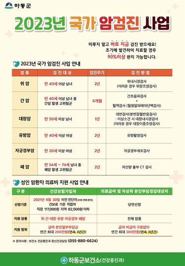 검진기간은 올해 12월 31일까지이며, 검진기관은 지정된 암검진 병·의원으로 전국 어디서나 가능하다.