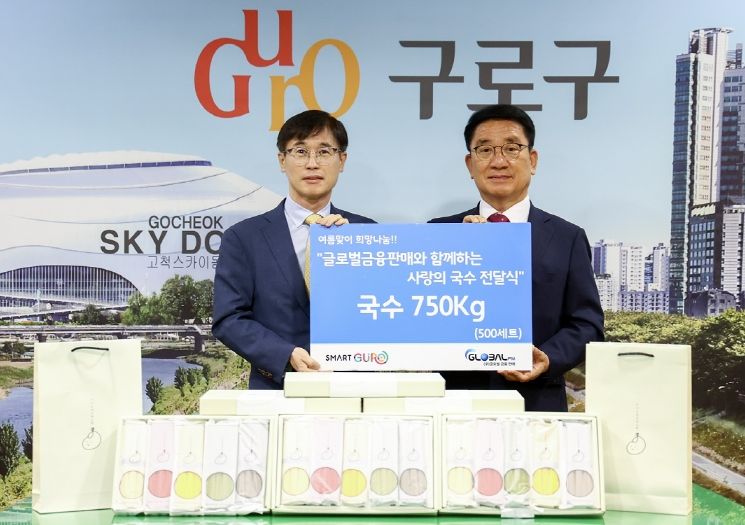 9일 글로벌금융판매가 관내 어려운 저소득 가구를 위해 수제소면세트 500개를 기탁했다.