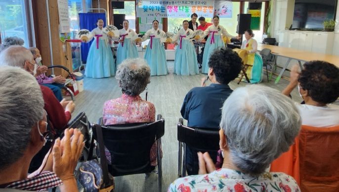 단원들은 이날 민요, 한국무용, 레크리에이션 등 다양한 프로그램을 선보이며 어르신들의 흥을 돋우었다.