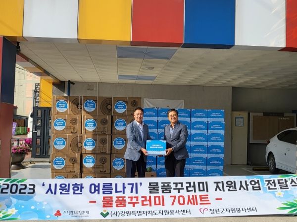 이날 전달한 물품꾸러미는 사회복지공동모금회, 강원특별자치도자원봉사센터의 후원으로 제작됐으며, 지역사회의 소외된 이웃을 돌아보고 폭염에 취약한 저소득층이 혹서기를 건강하게 보낼 수 있도록 9만원 상당의 혹서기 예방 물품으로 구성됐다.