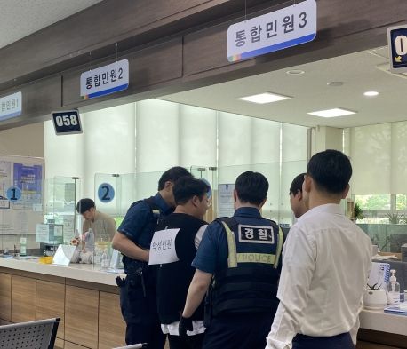 이날 모의훈련은 민원응대 과정에서 겪을 수 있는 폭언·폭행 피해 발생 시 신속한 초기대처를 통해 민원담당 공무원을 보호하고 안전한 근무환경을 조성하기 위해 실시됐다.