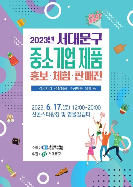 [제주교통복지신문 김강석 기자] 서대문구는 이달 17일 정오부터 저녁 8시까지 신촌 연세로 스타광장과 명물길쉼터에서 ‘서대문구 중소기업제품 홍보·체험·판매전’이 열린다고 밝혔다.