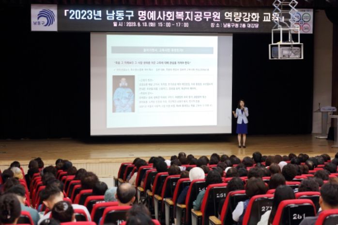 [제주교통복지신문 김강석 기자] 인천시 남동구는 최근 구청 대강당에서 명예 사회복지공무원 400명을 대상으로 고독사 예방 및 복지 위기가구 발굴을 위한 역량 강화 교육을 했다고 15일 밝혔다.