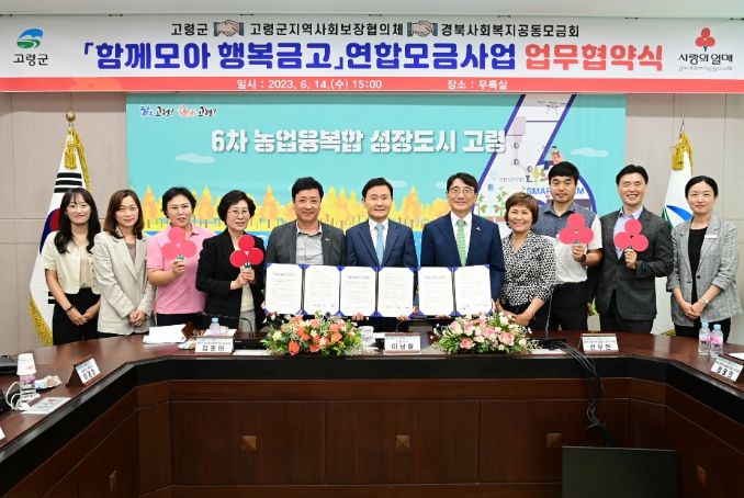 [제주교통복지신문 김강석 기자] 고령군은 14일 군청 우륵실에서 경북사회복지공동모금회 및 고령군지역사회보장협의체 등 10여명이 참석한 가운데 '함께모아 행복금고' 연합모금사업 업무협약을 체결했다.