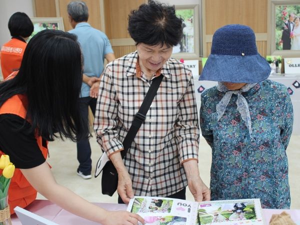 웨딩 전시회에서는 어르신, 장애인, 다문화 부부 12쌍의 모습을 담은 웨딩 액자와 앨범으로 제작·전시함으로써 지난 5월 23일 ~ 24일 양일간 진행된 리마인드 웨딩촬영 당시의 감동을 재현하는 계기가 됐다.