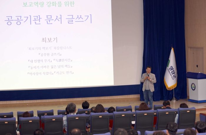 [제주교통복지신문 김강석 기자] 전남 영암군이 지난 14일 군청에서 최보기 작가를 초청해 ‘보고역량 강화를 위한 공무원 문서 글쓰기’ 특강을 실시했다.