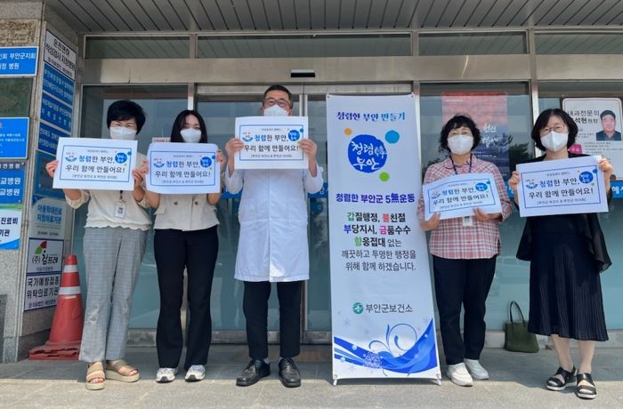 [제주교통복지신문 김강석 기자] 부안군 보건소는 지난 14일 혜성병원과 ‘깨끗하고 투명한 행정, 청렴한 부안을 만들기 위한 청렴협렵체 릴레이 캠페인’을 실시했다.