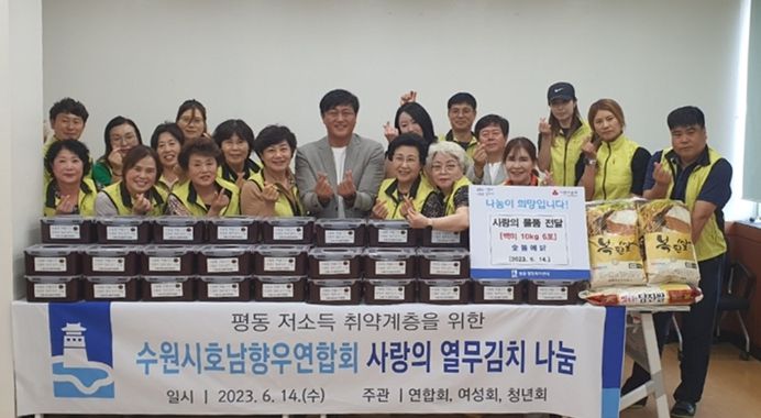 행사에 참여한 김주형 회장은 “수원에서 특히 어려운 세대가 많이 살고 있는 평동 지역을 위해 우리의 작은 정성으로 도움을 드리고 싶어 이런 행사를 개최하게 됐다”며 “지역의 어려운 이웃이 삶의 위안이 되는 계기가 됐으면 좋겠다”는 소감을 밝혔다.