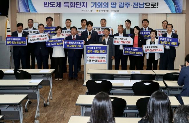 전남도의회와 광주광역시의회는 성명서를 통해 풍부한 재생에너지를 활용한 RE100 실현이 가능한 점, 대상 부지를 확보한 점, 한국에너지공대·광주과학기술원 등 반도체 산업 발전을 이끌어 갈 수 있는 인프라가 갖춰진 점 등 광주·전남이 가진 장점과 함께, 광주·전남 반도체 특화단지 지정은 ‘지방소멸’의 위기를 극복하고 국가 균형발전을 이룩한 핵심 모델을 만들 수 있는 기회임을 강조하며 ‘광주·전남 반도체 특화단지 지정’을 강력히 촉구했다.