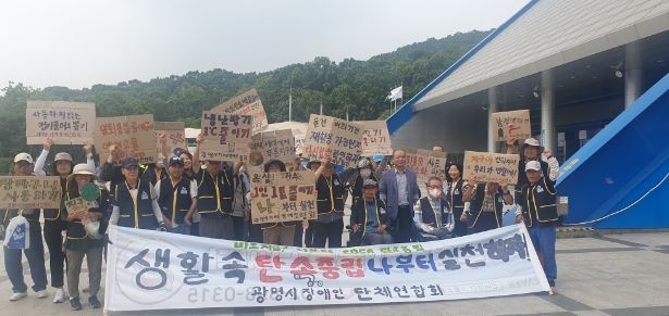 이번 선언식은 장애인이 한자리에 모여 시민 주도의 지속 가능한 광명시 만들기를 위한 첫걸음으로, 참석자들은 ‘함께 실천 탄소중립’, ‘2050 탄소중립도시 광명’ ‘함께 해요 지구살리기’, ‘올바른 분리배출’ 등 피켓을 들고 구호를 외치며 나부터 실천을 다짐했다.
