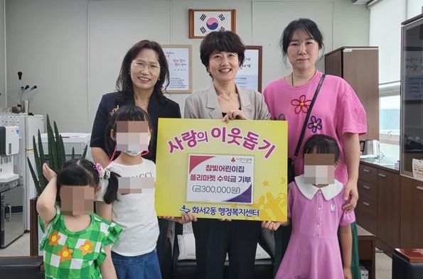 [제주교통복지신문 김강석 기자] 지난 15일, 참빛어린이집(원장 김도연) 원아들과 학부모들이 화서2동 행정복지센터를 방문하여 지역의 어려운 이웃을 위해 써달라며 플리마켓 수익금 30만원을 전달했다.