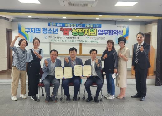 [제주교통복지신문 김강석 기자] 구지면지역사회보장협의체는 지난 14일‘관내 청소년의 꿈 성장 지원’을 위해 대구시 행복진흥원청소년지원본부 청소년 활동 진흥 센터와 업무 협약식을 체결했다고 밝혔다.