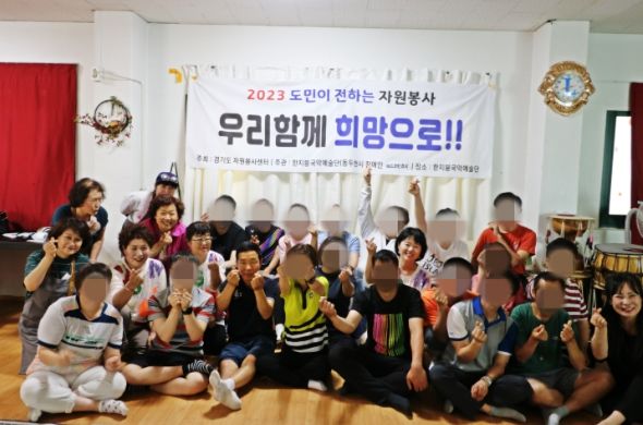 [제주교통복지신문 김강석 기자] (사)동두천시종합자원봉사센터는 지난 6월 9일 자원봉사단체 한지붕 국악예술단 회원 9명이 (사)한국장애인부모회동두천시지부 장애인들과 난타 수업 프로그램을 운영했다고 밝혔다.