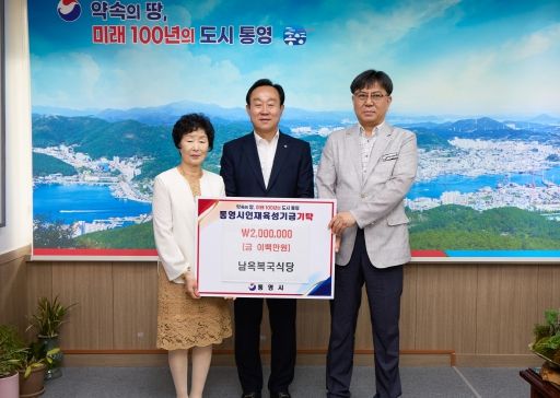 지난 6월 15일 남옥복국식당에서는 통영시를 찾아 인재육성기금 200만원을 기탁했으며, 77번청과에서도 지역인재육성을 위해 써달라며 100만원의 인재육성기금을 기탁했다.