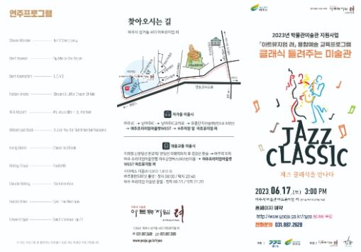 [제주교통복지신문 김강석 기자] 2023 '아트뮤지엄 려' 여덟 번째 전시, ‘김심훈 개인전 - 누정(樓亭)’이 열리고 있는 여주시 미술관 '아트뮤지엄 려'에서는 2023년 6월 17일 오후 3시, 미술전시와 음악을 함께 보고 들으며 곡의 해설까지도 들을 수 있는 융합예술교육 ‘클래식 들려주는 미술관’ 프로그램을 진행한다. 이번 프로그램은 ‘재즈 클래식을 만나다’라는 주제로 운영된다.
